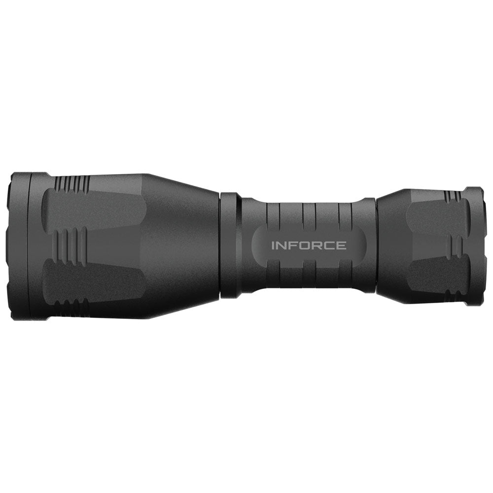 The INFORCE ARC is a modular tactical flashlight designed for professionals who demand extreme performance and adaptability. Built with the Scout footprint and thread pattern, the INFORCE ARC is highly adaptable and customizable, allowing users to upgrade existing lights with high-performance ARC components. Its LR head delivers an impressive 75,000 candela hotspot for long-range target identification, with a powerful throw reaching up to 529 meters, and 1,200 lumens of spill lighting for a wide field of view especially in CQB situations.