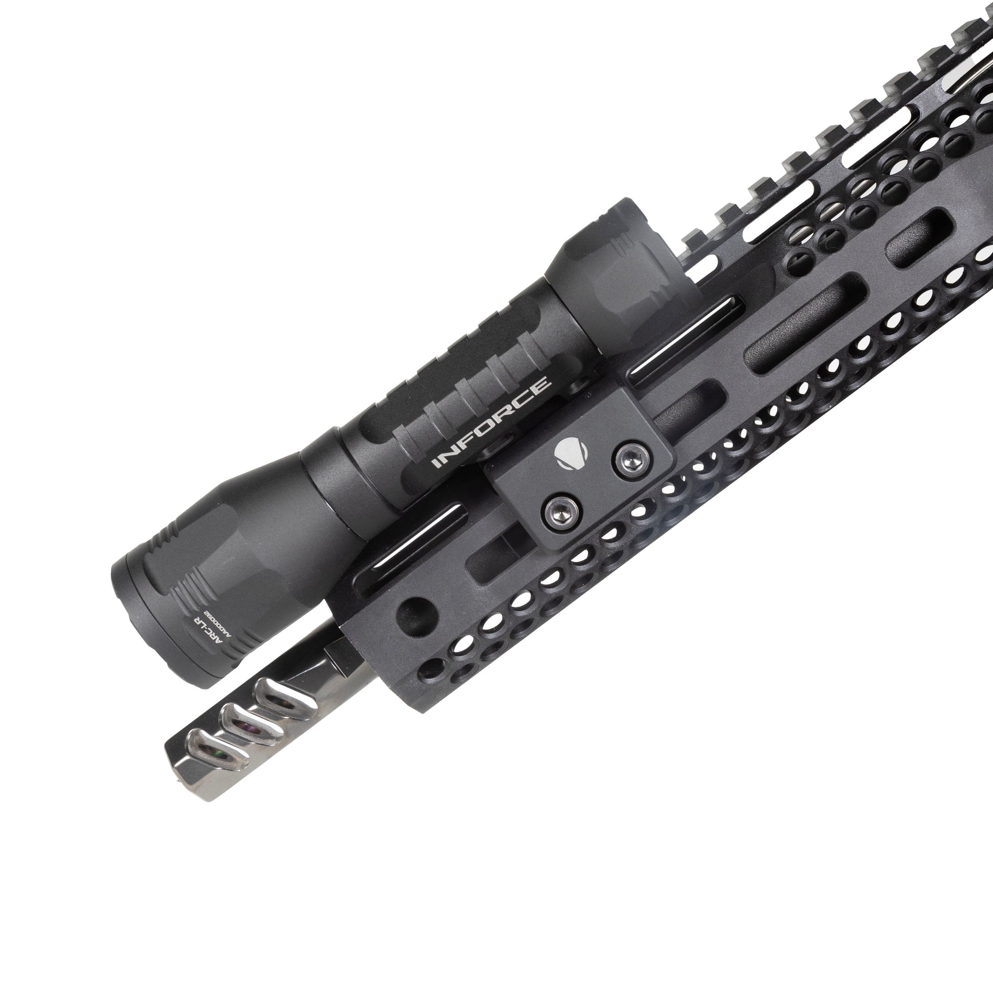 The INFORCE ARC is a modular tactical flashlight designed for professionals who demand extreme performance and adaptability. Built with the Scout footprint and thread pattern, the INFORCE ARC is highly adaptable and customizable, allowing users to upgrade existing lights with high-performance ARC components. Its LR (Long Range) head delivers a potent 90,000 candela hotspot for long-range target identification, with a powerful throw reaching up to 600 meters, and 1,400 lumens of spill lighting for a wide field of view for close-quarters visibility.
